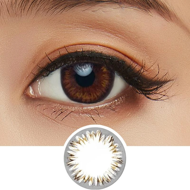 This line of cosmetic contacts was designed to mimic the striations of natural irises as closely as possible, and the result is a beautiful enhancement lens that brings out your eyes’ true sparkle. Your eyes get a boost of definition from the limbal ring, printed at just the right thickness to prevent an unnatural borders. Acuvue® Define™ dailies also deliver an amazing highlight with their soft, yet bold base color (caramel brown for the Natural Shine shade).