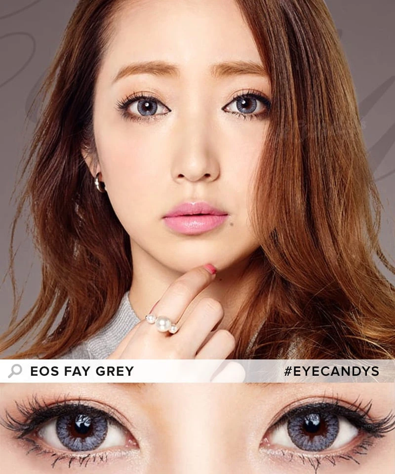 - EOS Fay Grey contacts show up better than similar lenses like GEO Nudy Grey on dark eyes, and are more realistic looking than the similarly sized EOS New Adult Grey. We suggest wearing them with a nude, matte lip to really let your eyes shine.