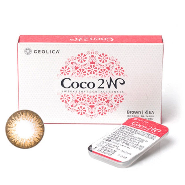 GEO Coco2W biweekly circle lenses feature an ultra natural light brown color surrounded by a dark rim to make eyes appear larger, brighter and cuter!