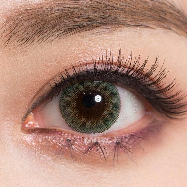 Get ready for the love that’ll be sent your way once you put on these green contacts! You’ll instantly understand why the most beloved Japanese models are obsessed with this series of colored contacts. Find yourself adored by all when you rock these natural-looking prescription colored contacts with an inner yellow tinge that will blend in beautifully and bring out the spark in your eye for a brightening effect.