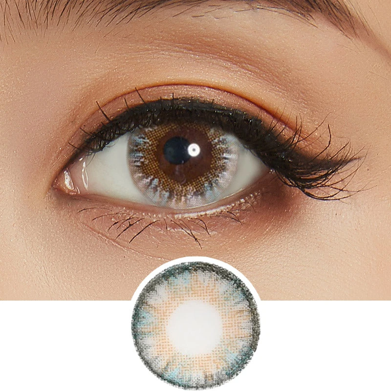 With a magical design inspired by the shape of a clover, these circle lenses have lobes of alternating complementary colours. Just like how 4-leaf clovers are prettiest, NEO knows that 4-tone lenses will flatter your eyes the most. That’s why these grey contacts for brown eyes were designed in this fashion:
